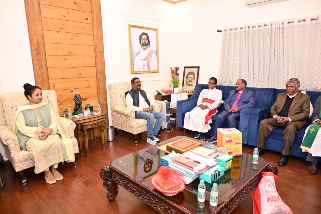 Ranchi : मुख्यमंत्री श्री हेमन्त सोरेन से रांची जिले में अवस्थित विभिन्न चर्चों के पुरोहित तथा यूथ लीडर्स ने शिष्टाचार भेंट कर क्रिसमस की दी बधाई, मुख्यमंत्री ने भी सभी को इस पर्व की दी असीम शुभकामनाएं_ *क्रिसमस उत्सव परमेश्वर के प्रति असीम प्रेम और आस्था का है प्रतीक_* हम सभी के जीवन में खुशियां बरकरार रहे, प्रभु यीशु से यही प्रार्थना है l