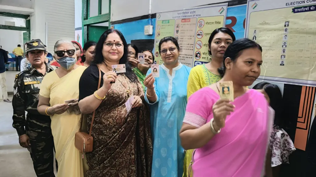 रांची: झारखंड के चार लोकसभा सीटों पर शांतिपूर्ण मतदान संपन्न हो गया. रांची, धनबाद, जमशेदपुर और गिरिडीह लोकसभा क्षेत्र के मतदाताओं ने लोकतंत्र के महापर्व में पूरे उत्साह के साथ बढ़-चढ़ कर हिस्सा लिया. सुबह से ही मतदान केंद्रों में वोटर्स की कतार लगी रही. धूप और गर्मी के बावजूद लोग कतार में खड़े होकर वोट देने के लिए अपनी बारी का इंतजार कर रहे थे. शाम 5 बजे तक झारखंड में 61.41 फीसदी मतदान हुआ. रांची में सबसे कम 58.73 % प्रतिशत वोटिंग हुई. वहीं गिरिडीह लोकसभा सीट पर सबसे अधिक 64.75 % वोटिंग हुई. धनबाद में 58.90 फीसदी, जमशेदपुर में 64.30 फीसदी वोटिंग हुई.