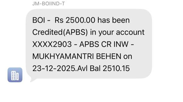 भुगतान*======================क्रिसमस के पावन अवसर पर राज्य सरकार द्वारा झारखंड की महिलाओं को विशेष उपहार स्वरूप मुख्यमंत्री मंईयां सम्मान योजना अंतर्गत *नवंबर माह* की सम्मान राशि का भुगतान किया जा रहा है। इस योजना के तहत रांची जिले की कुल *03 लाख 93 हजार 84 महिलाओं के बैंक खातों में आधार बेस्ड डायरेक्ट बेनिफिट ट्रांसफर (DBT) के माध्यम से 2500 रुपये प्रति लाभुक की दर से कुल 98 करोड़ 27 लाख 10 हजार* रुपये की राशि का भुगतान कर दिया गया है।*विभिन्न प्रखंड एवं शहरी क्षेत्रों में भुगतान की स्थिति (नवंबर माह)**अनगड़ा – 16,935 लाभुक**अरगोड़ा (शहरी क्षेत्र) – 13,207 लाभुक**बड़गाईं (शहरी क्षेत्र) – 9702 लाभुक**बेड़ो – 20,761 लाभुक**बुण्डू – 8,552 लाभुक**बुण्डू (नगर पंचायत) – 3,574 लाभुक**बुढ़मू – 18,152 लाभुक**चान्हो – 19,851 लाभुक**हेहल (शहरी क्षेत्र) – 15,537 लाभुक**ईटकी – 10,466 लाभुक**कांके – 31,781 लाभुक**कांके (शहरी क्षेत्र) – 1,336 लाभुक**खलारी – 9,699 लाभुक**लापुंग – 11,473 लाभुक**माण्डर – 23,308 लाभुक**नगड़ी – 18,084 लाभुक**नगड़ी (शहरी क्षेत्र) – 8,184 लाभुक**नामकुम – 18,053 लाभुक**नामकुम (शहरी क्षेत्र) – 9,151 लाभुक**ओरमांझी – 18,342 लाभुक**राहे – 9,691 लाभुक**रातू – 18,790 लाभुक**सिल्ली – 21,390 लाभुक**सोनाहातू – 13,269 लाभुक**तमाड़ – 18,758 लाभुक**सदर (शहरी क्षेत्र) – 25,038 लाभुक*उपायुक्त–सह–जिला दंडाधिकारी, रांची श्री मंजूनाथ भजंत्री ने कहा कि क्रिसमस का पर्व प्रेम, सेवा और खुशियाँ बांटने का संदेश देता है। इस शुभ अवसर पर मुख्यमंत्री मंईयां सम्मान योजना के अंतर्गत महिलाओं को सम्मान राशि का भुगतान राज्य सरकार की ओर से एक स्नेहपूर्ण उपहार है।