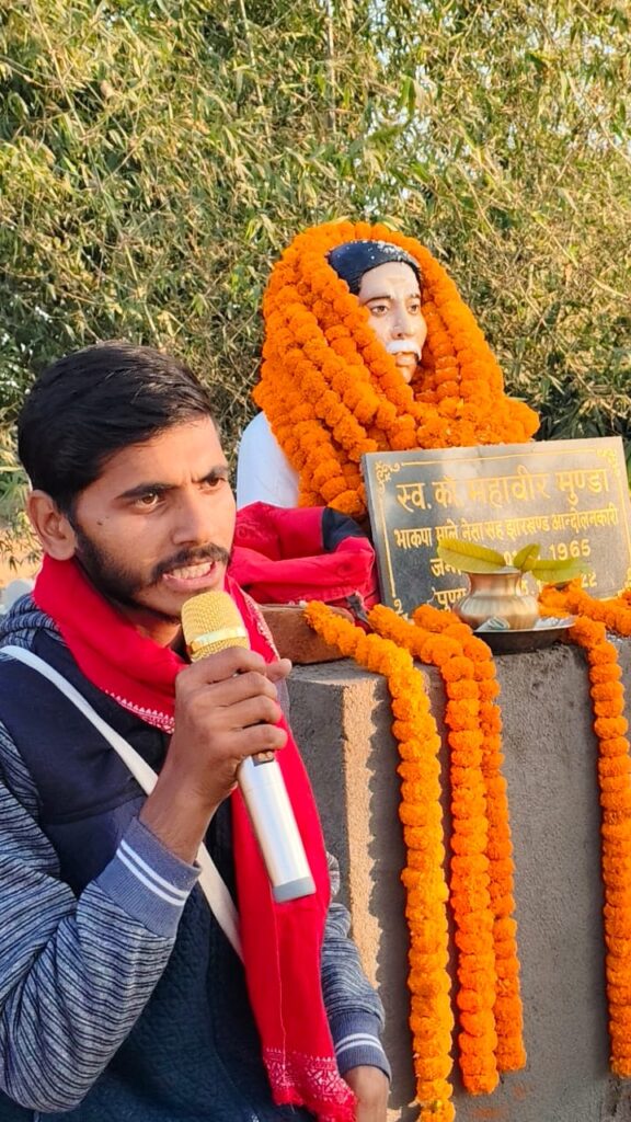 कार्यक्रम में संबोधित करते हुए भाकपा माले नेता एवं आदिवासी संघर्ष मोर्चा के झारखंड राज्य प्रभारी जगरनाथ उरांव ने कहा कि महावीर मुंडा ने जल-जंगल-जमीन और खनिज संपदा बचाने की जिस लड़ाई को प्रारंभ किया था, आज उसे और मज़बूती से आगे ले जाने की आवश्यकता है। भाकपा माले रांची जिला सचिव जगमोहन महतो ने कहा कि प्रतिमा का अनावरण उनके संघर्षों को नई ऊर्जा देने की दिशा में एक ठोस कदम है। उन्होंने कहा कि आज आदिवासियों के संसाधनों को काॅर्पोरेट हितों में लूटा जा रहा है और आवाज उठाने वालों को दमन का सामना करना पड़ रहा है। बस्तर और हसदेव के ताज़ा उदाहरण इसके प्रमाण हैं। दूसरी तरफ मोदी सरकार द्वारा लाए गए वीबी जी राम जी विधेयक है, जिसके कारण मनरेगा जो ग्रामीण लोगों को रोजगार की गारंटी देता था, उनको समाप्त किया जा रहा है।